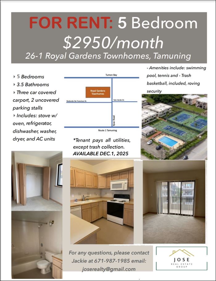 - 26-1 Royal Gardens Townhomes, Tamuning - Posted 10/30/2025