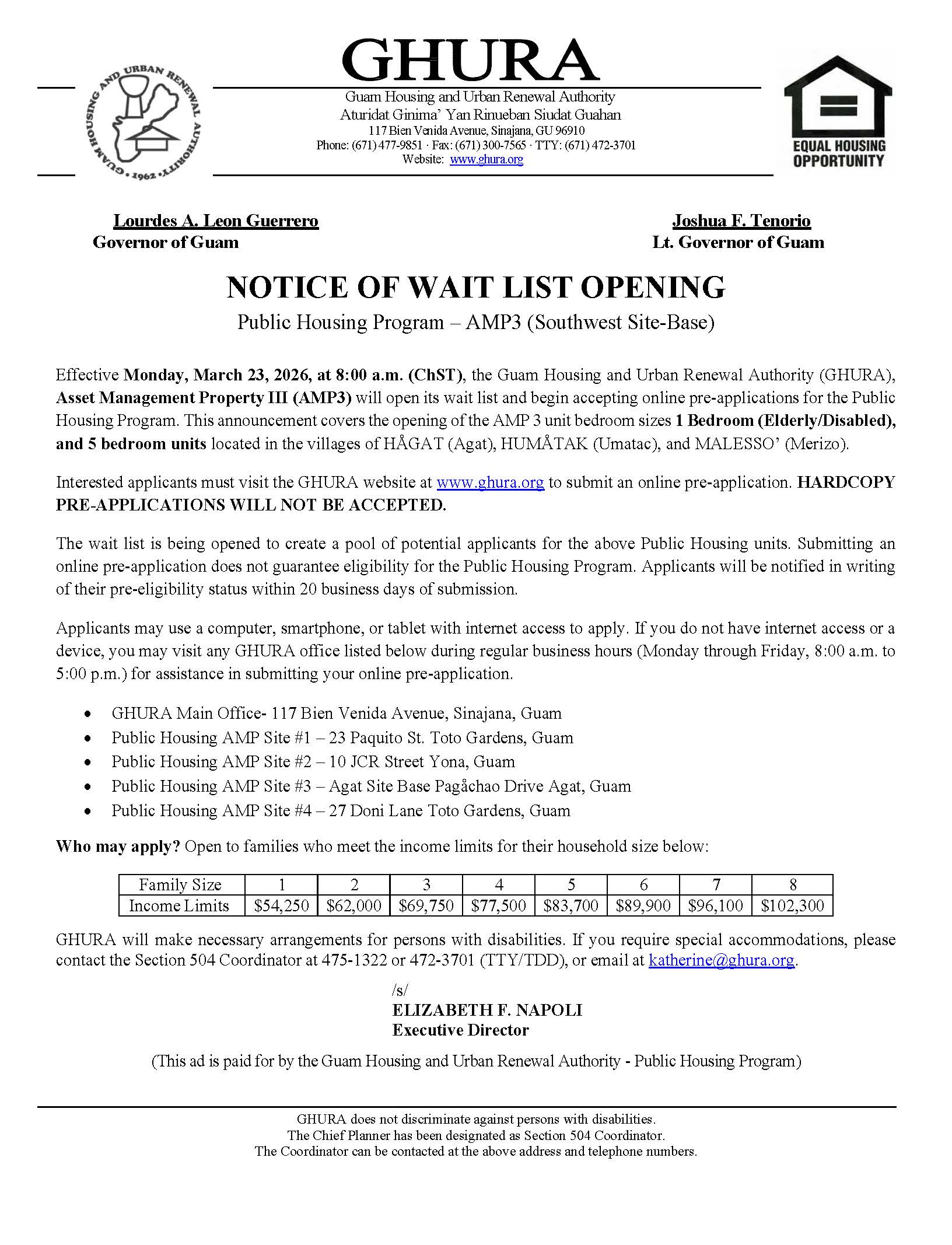 Notice of Waiting List Opening - Public Housing Program AMP3 (Southwest Site-Base)